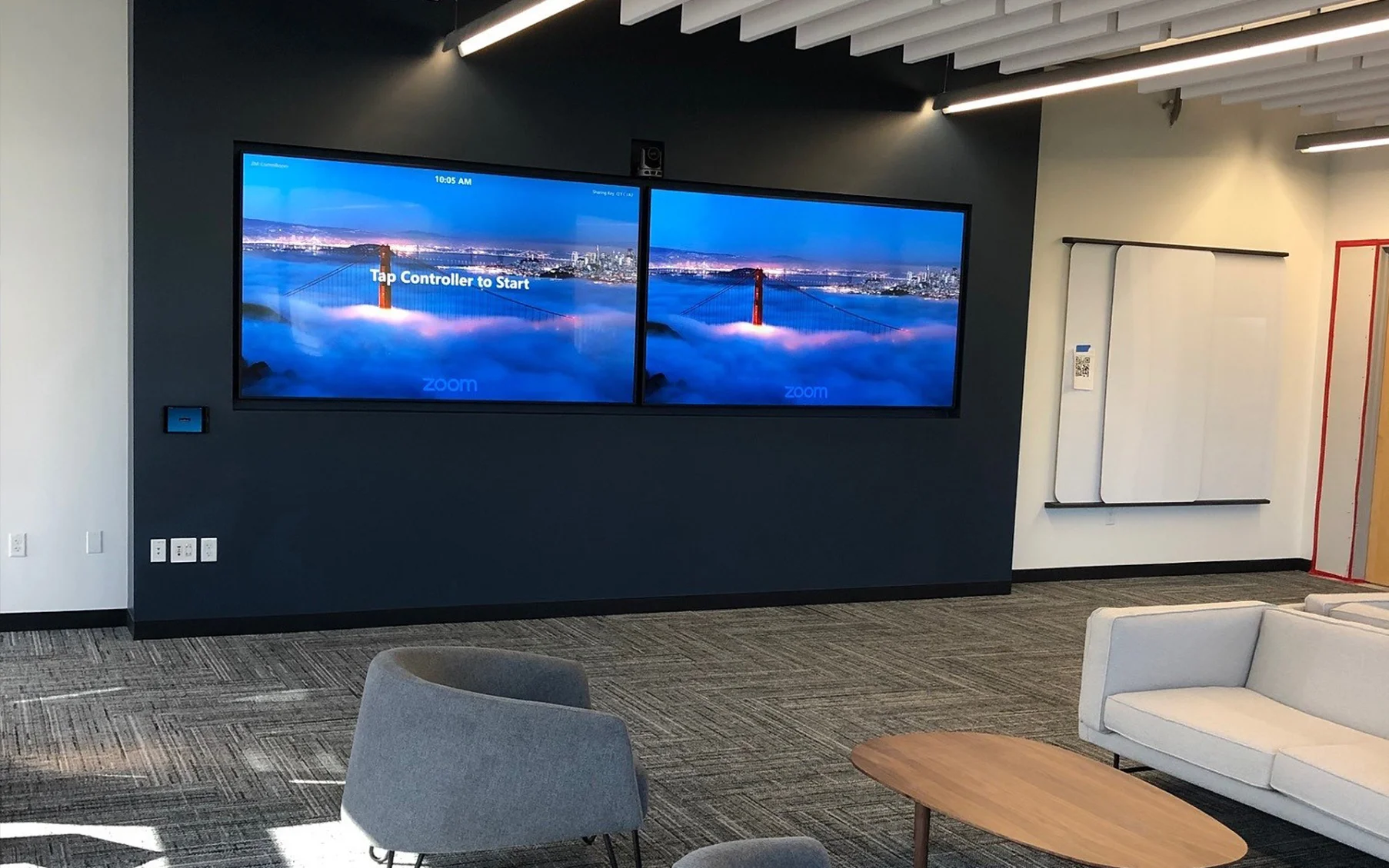 For Plexxikon, Young Electric + Communications provided a complete audio-visual design and installation solution. The final product included an all-hands and training space with a professional AV Zoom room boasting dual 98” displays, two PTZ cameras, and two Shure MXA 910 beamforming microphones. Plexxikon’s boardroom was also outfitted with a 98” flat panel display, three beamforming table microphones, ceiling speakers, and a PTZ camera. Additional Zoom rooms received a Polycom Trio 8500 with an integrated speaker, microphone, and Zoom control panel.
