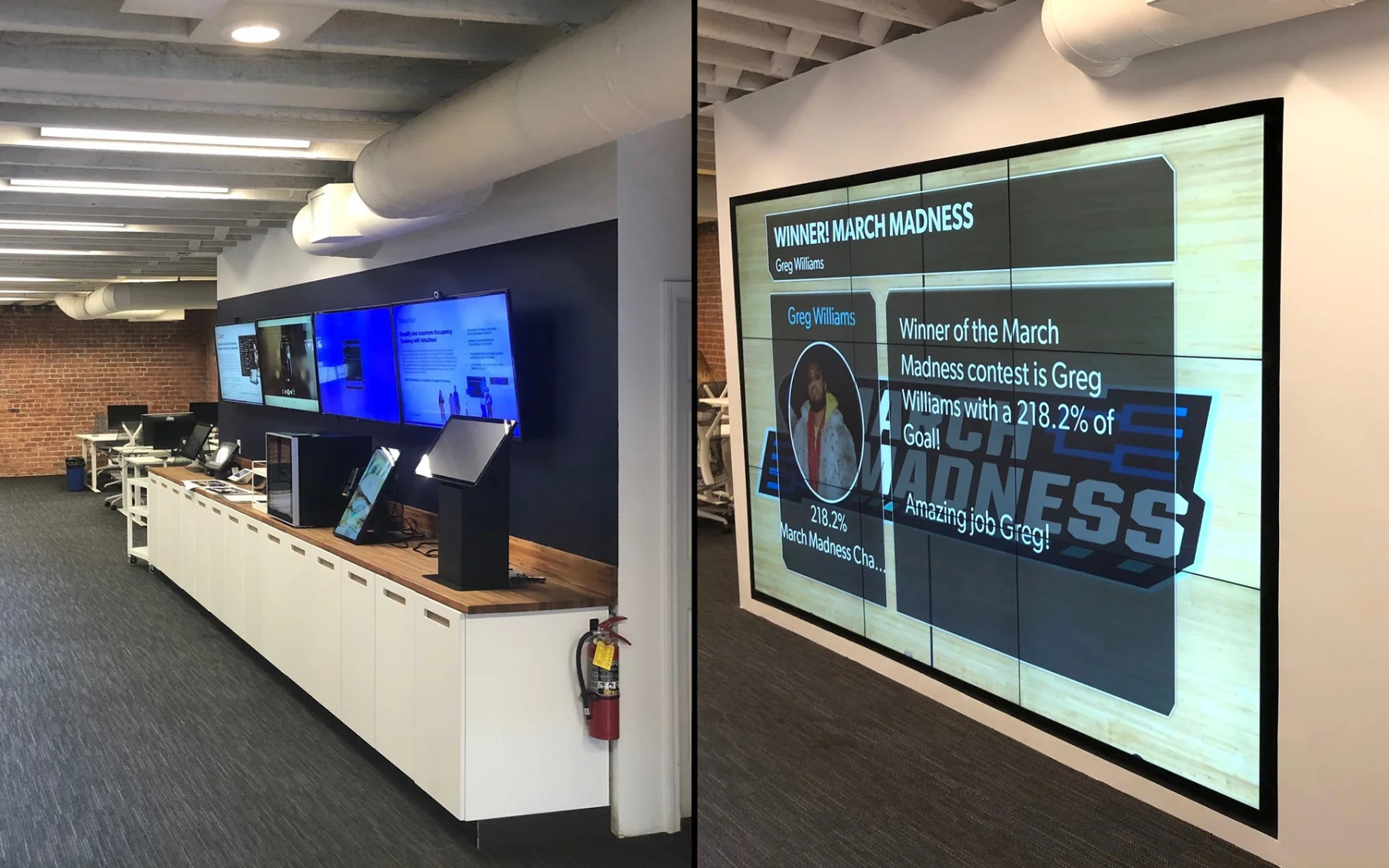 Young Electric + Communications provided the client with a complete audio visual design and installation solution. Raydiant received a 165” videowall, integrated control system, two PTZ cameras, ceiling speakers, microphones, and a custom multi-source video switcher.